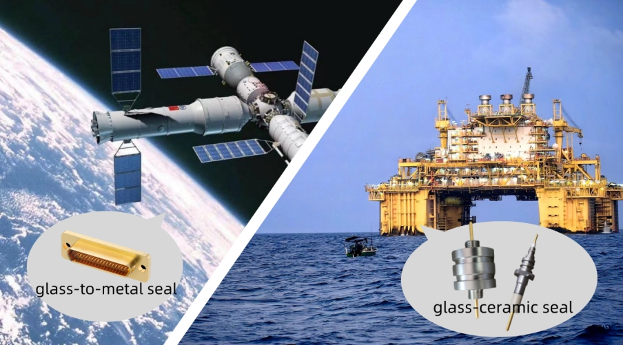 Glass is an excellent electrical insulator with low thermal conductivity, making it highly resistant to high operational pressures and temperatures. However, due to its rigidity and brittleness, glass is often paired with metal or ceramic materials to create a more secure seal. These designs result in connectors that are highly reliable, durable, and resistant to environmental factors such as temperature variations, humidity, and corrosion.