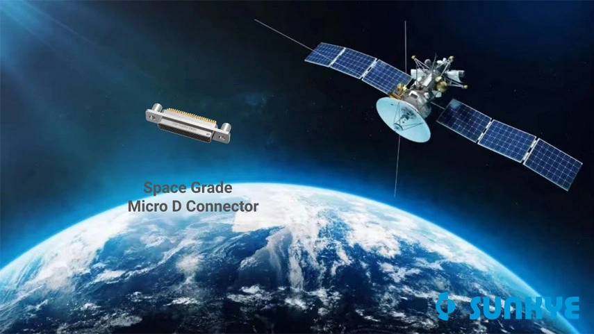 Under the influence of ultra-low pressure 1.32 x10~11Pa and direct sunlight in outer space, satellites tend to be miniaturized in size and design, and shields are added to material components such as cables, connectors, and circuit boards to alleviate the problems caused by cosmic radiation. Sunkye Space Grade Micro D Connector features high performance of small and light, Antivibration, and shielded design and can work normally at ambient temperature -55 ~ +125 °C.